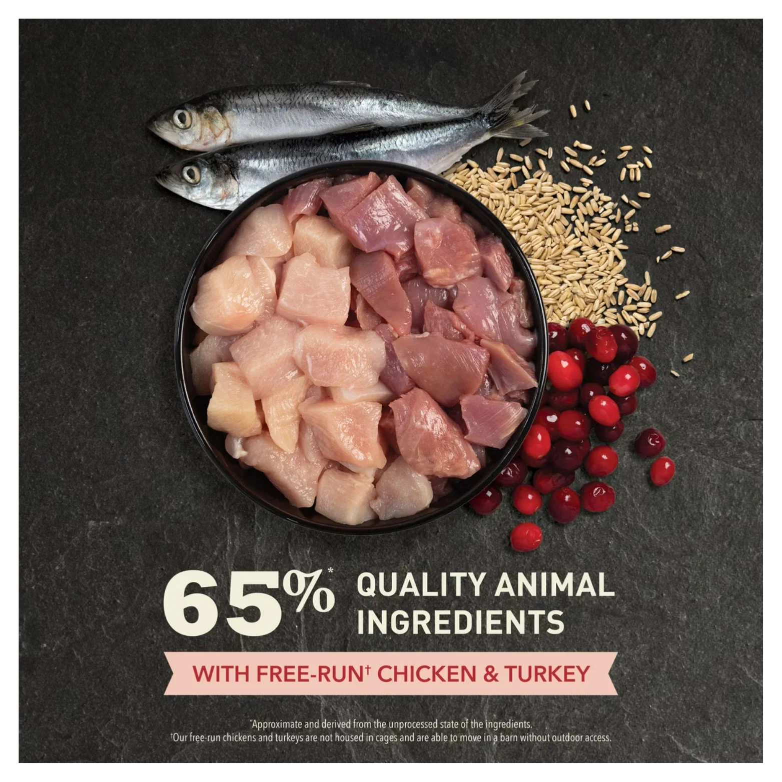 - Rich with 65% quality animal ingredients1 like free-run2 chicken and turkey and whole herring.